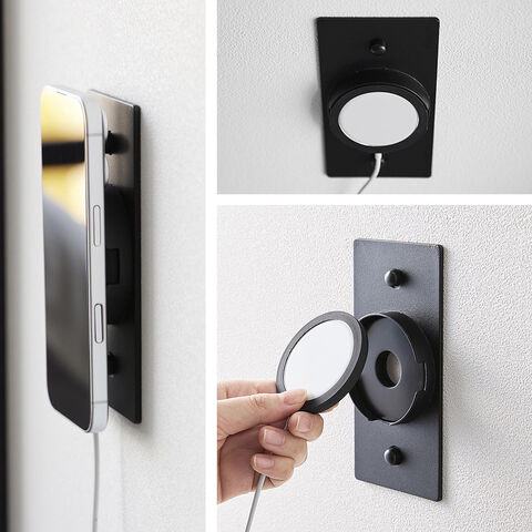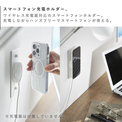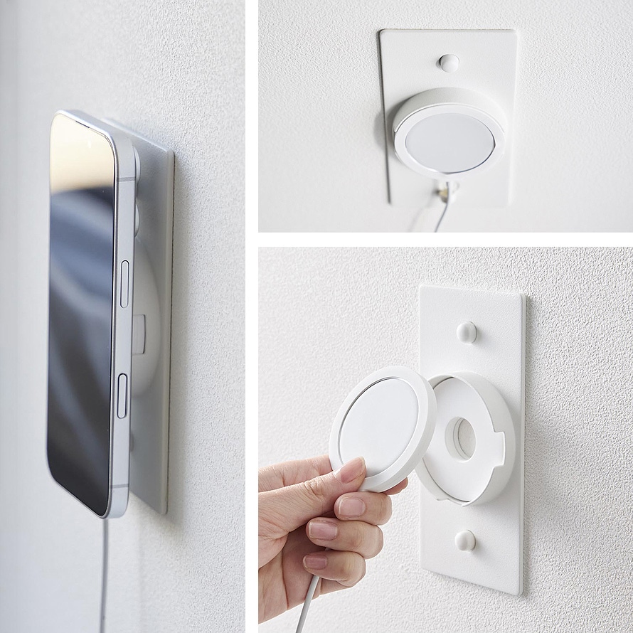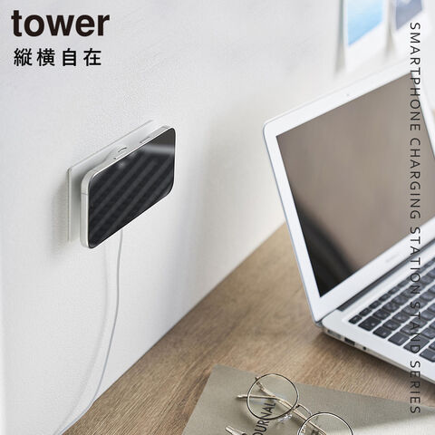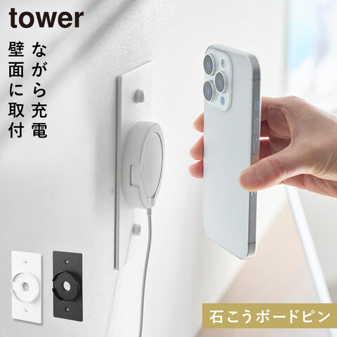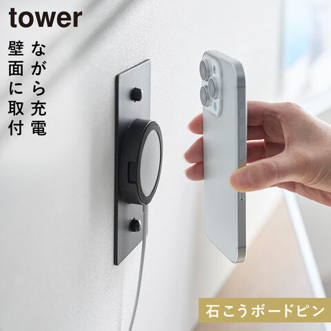 ウォールスマートフォン充電ホルダー タワー 石こうボード壁対応 山崎実業 tower スマホ マグネット式ホルダー MagSafe 充電 磁石 壁掛け おしゃれ モノトーン ホワイト ブラック 10084 10085
