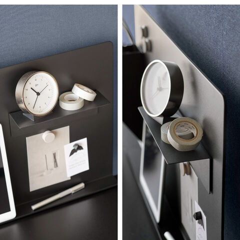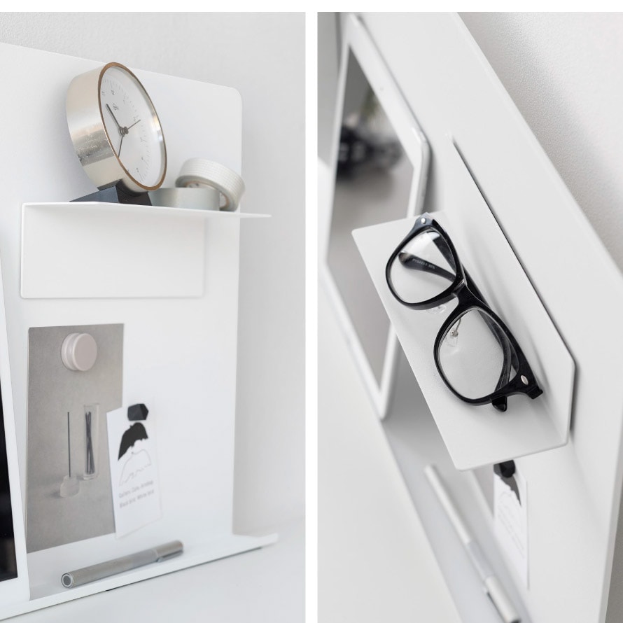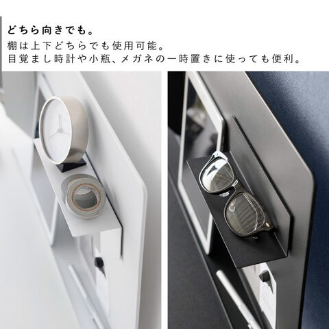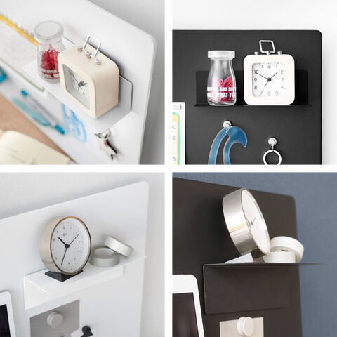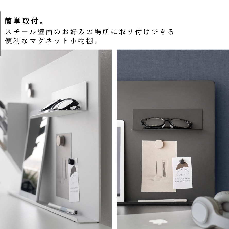 スチール壁面のお好みの場所に取り付けできる便利なマグネット小物棚。