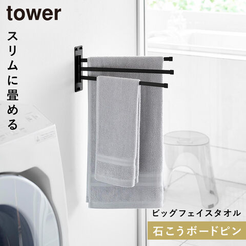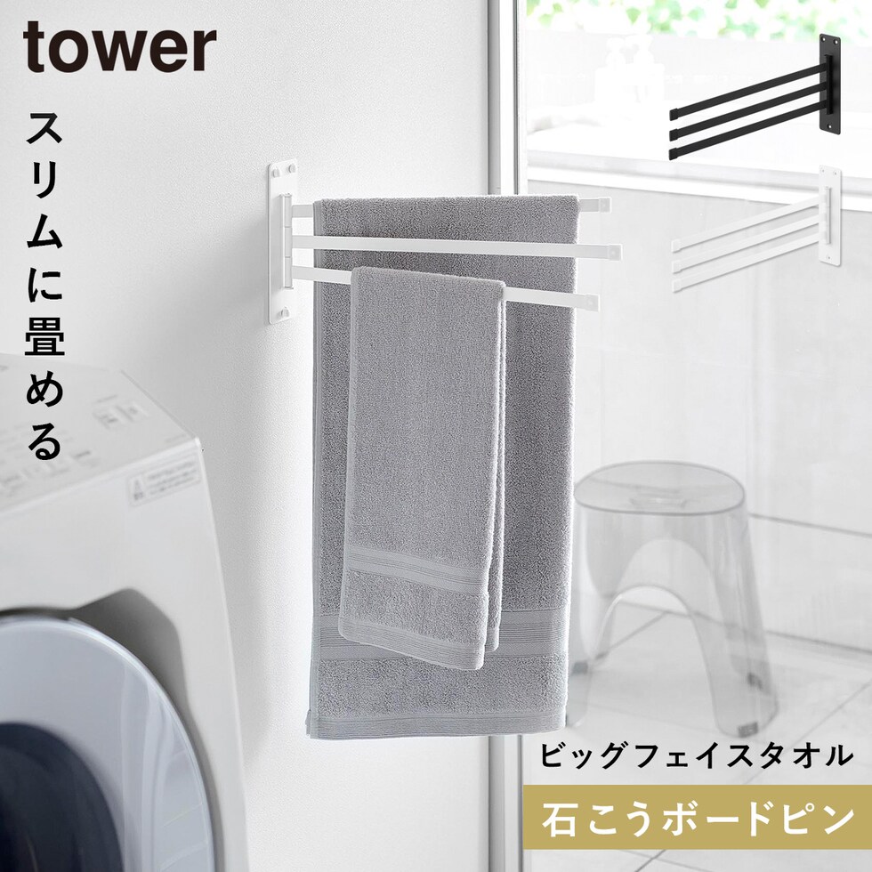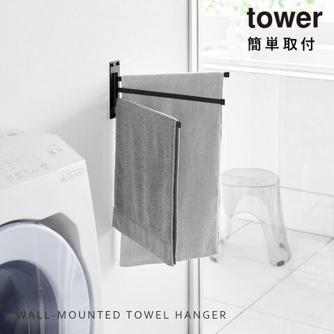 【ポイント5倍】ウォールタオルハンガー タワー3連 石こうボード壁対応 山崎実業 tower タオルハンガー 洗面所 壁掛け スリム 3枚 おしゃれ モノトーン ホワイト ブラック 10098 10099