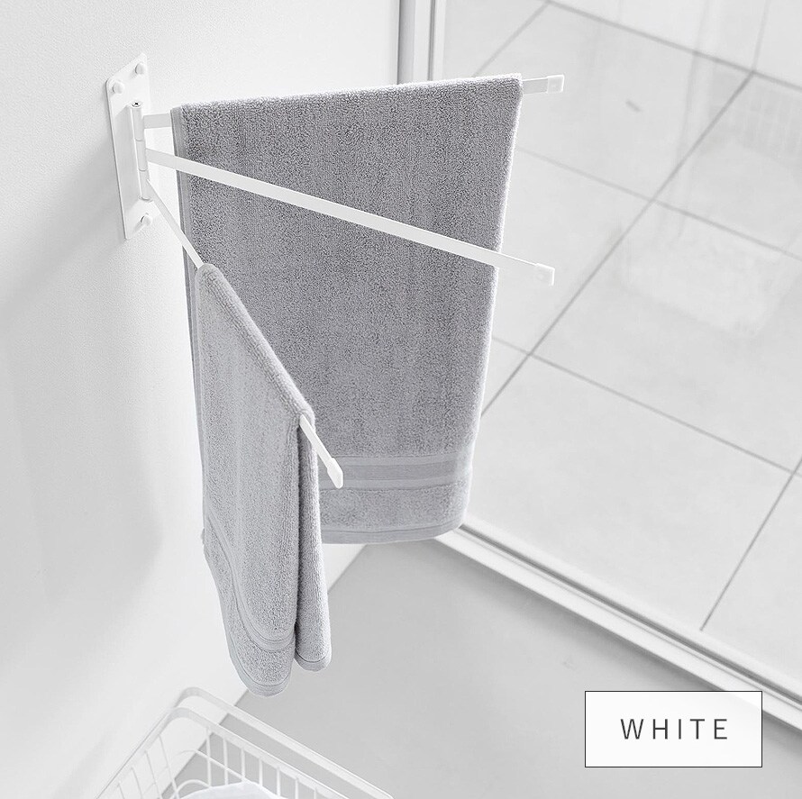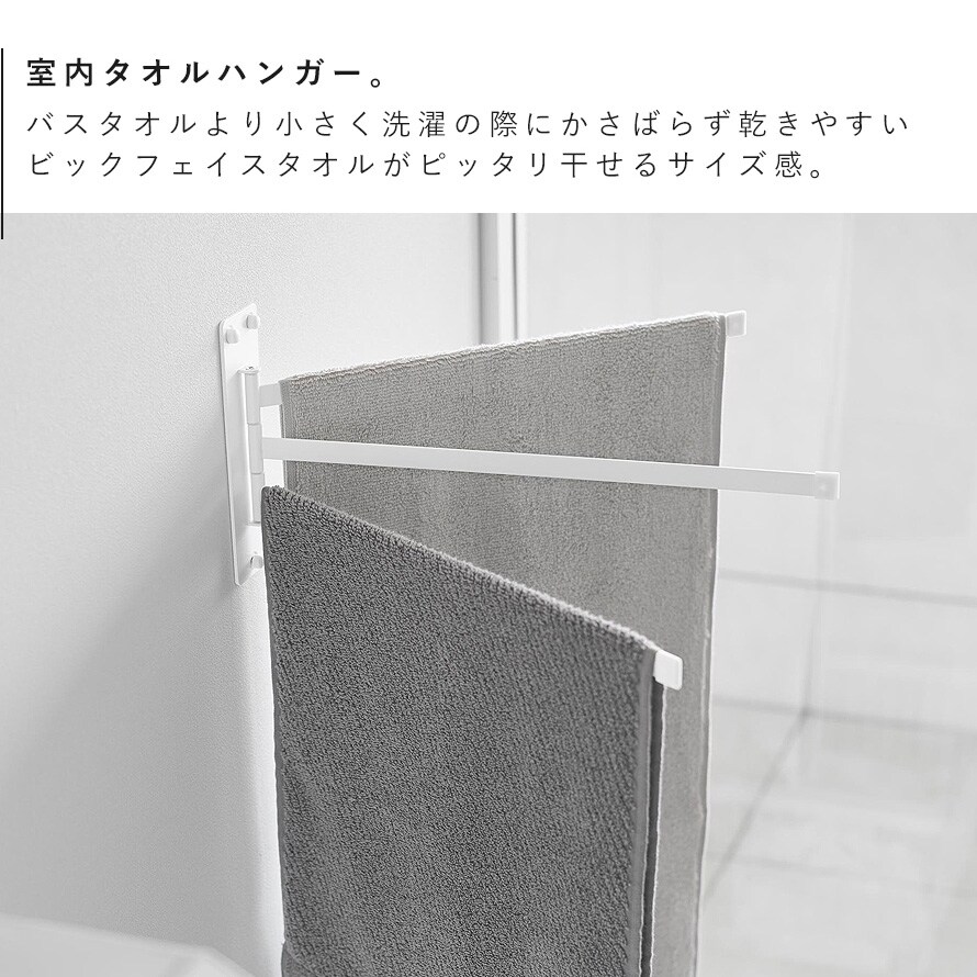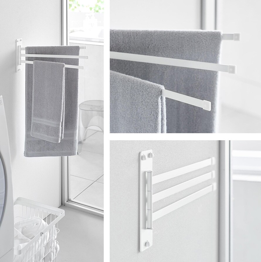 使わない時はスリムに収納できる室内物干し3連タオルハンガー。