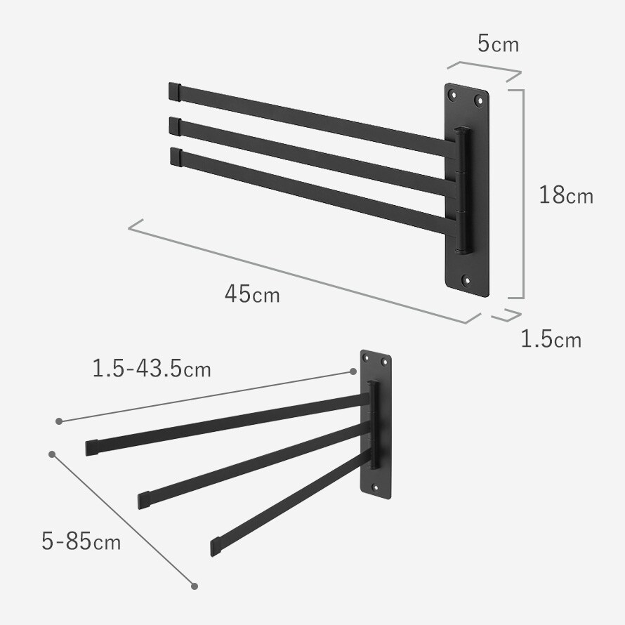| サイズ | 幅45×奥行1.5×高さ18cm 使用時/幅5-85×奥行1.5-43.5×高さ18cm |