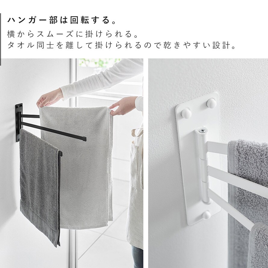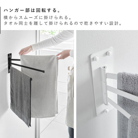 ハンガー部は180度左右に大きく開くため、タオル同士が重ならず、サッと掛けることができます。