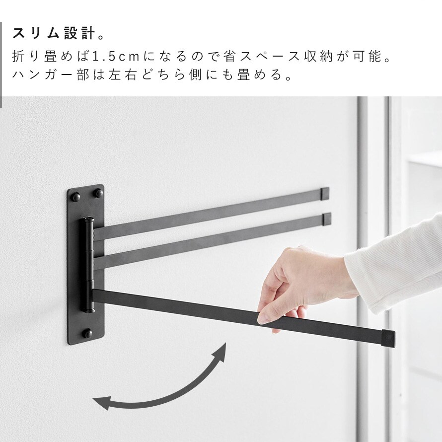 奥行きが1.5cmとスリムに収納できる設計で、ハンガー部は左右どちら側にも収納可能。