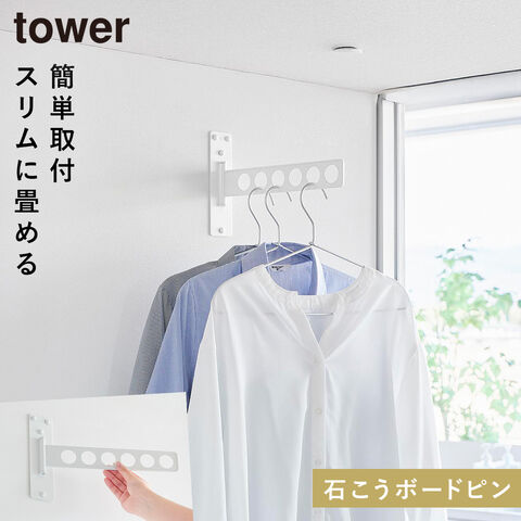 【ポイント5倍】ウォール衣類ハンガー タワー 石こうボード壁対応 山崎実業 tower ハンガー 壁掛け 物干しハンガー 室内 壁 おしゃれ モノトーン ホワイト ブラック 10100 10101