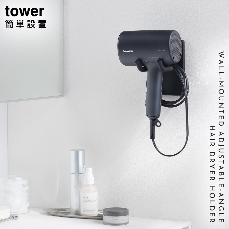 【ポイント5倍】ウォール角度調節ドライヤーホルダー タワー 石こうボード壁対応 山崎実業 tower ドライヤーホルダー 壁 ハンズフリー 壁掛け おしゃれ モノトーン ホワイト ブラック 10104 10105