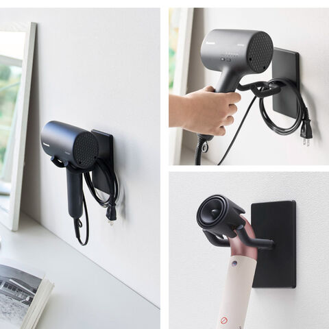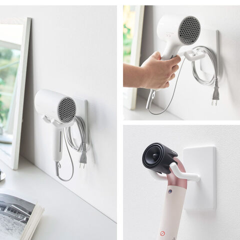 石こうボードピンで簡単取り付け。ドライヤーの形状に合わせて角度が調節できるホルダー。