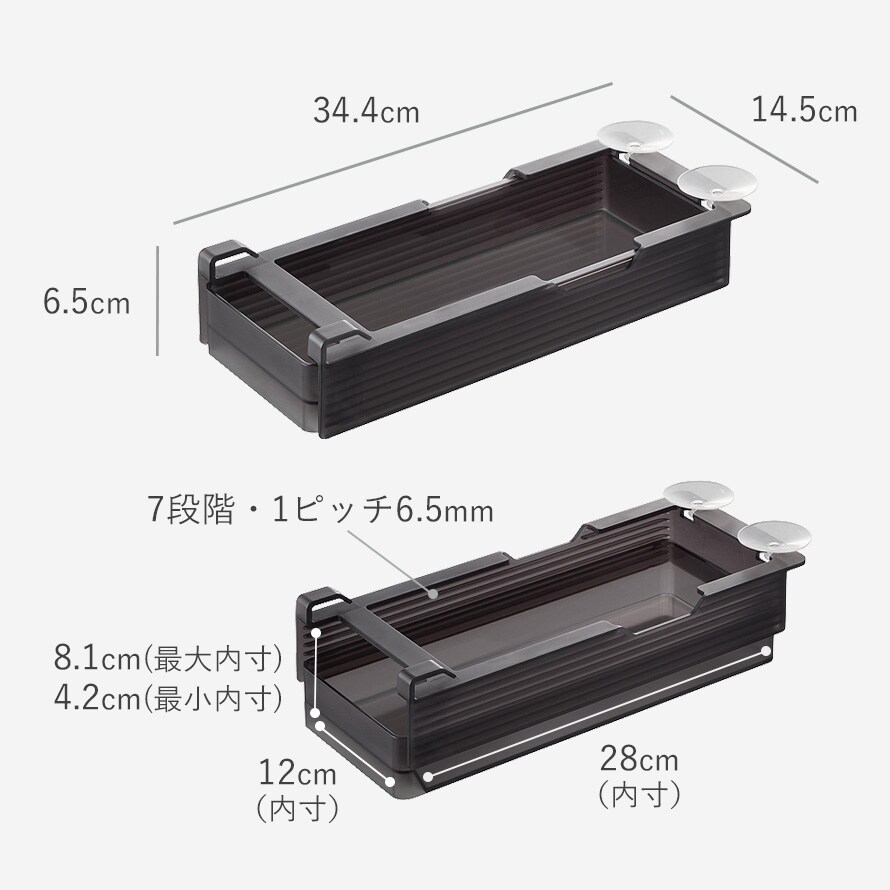 収納する物や隙間に合わせて高さを7段階に調節できる棚下収納ラック(Sサイズ)。