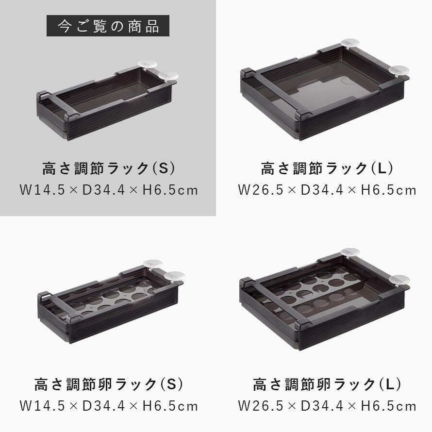 同シリーズの冷蔵庫中棚下高さ調節ラック(Lサイズ)や卵ラック(Sサイズ・Lサイズ)などもございます。