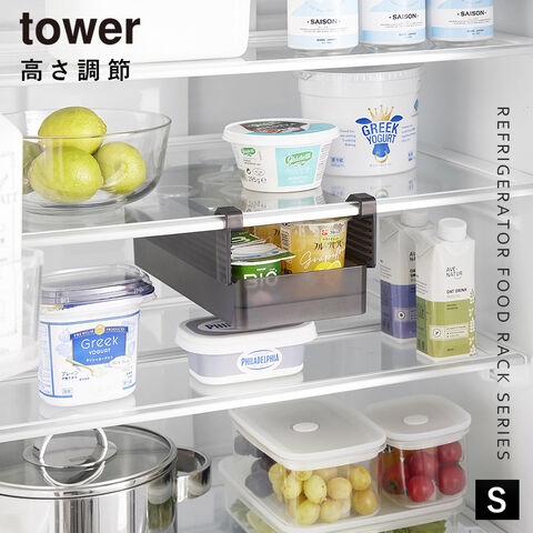 冷蔵庫中棚下高さ調節ラック タワー S 山崎実業 tower おしゃれ 冷蔵庫 収納 グッズ 引き出し モノトーン ホワイト ブラック 10106 10107