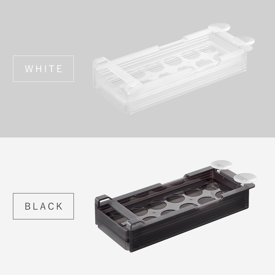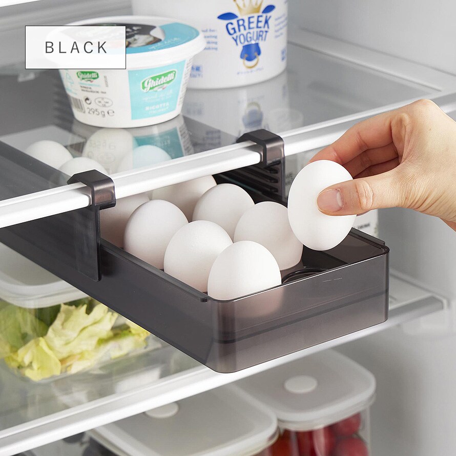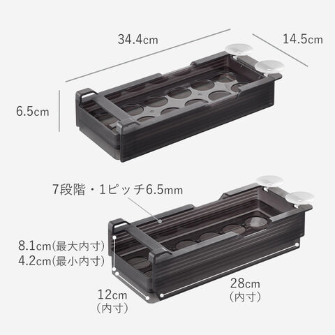 収納する物や隙間に合わせて高さを7段階に調節できる、棚下12個用卵ラック(Sサイズ)。