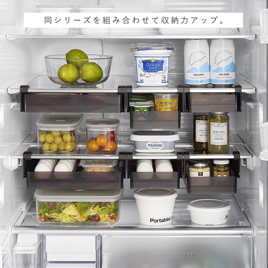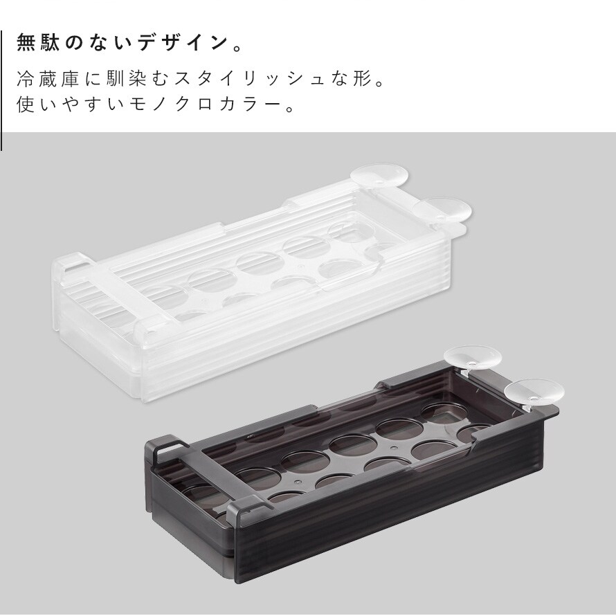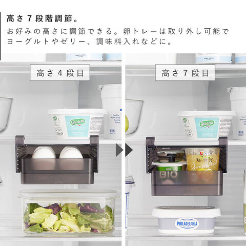 卵収納から、ヨーグルトやゼリーなど高さのある食品まで収納する物に合わせて高さを調節できるので、冷蔵庫の中をスッキリ整理整頓できます。