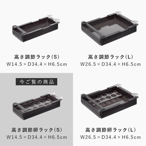 同シリーズの冷蔵庫中棚下高さ調節卵ラック(Lサイズ)や高さ調節ラック(Sサイズ・Lサイズ)などもございます。