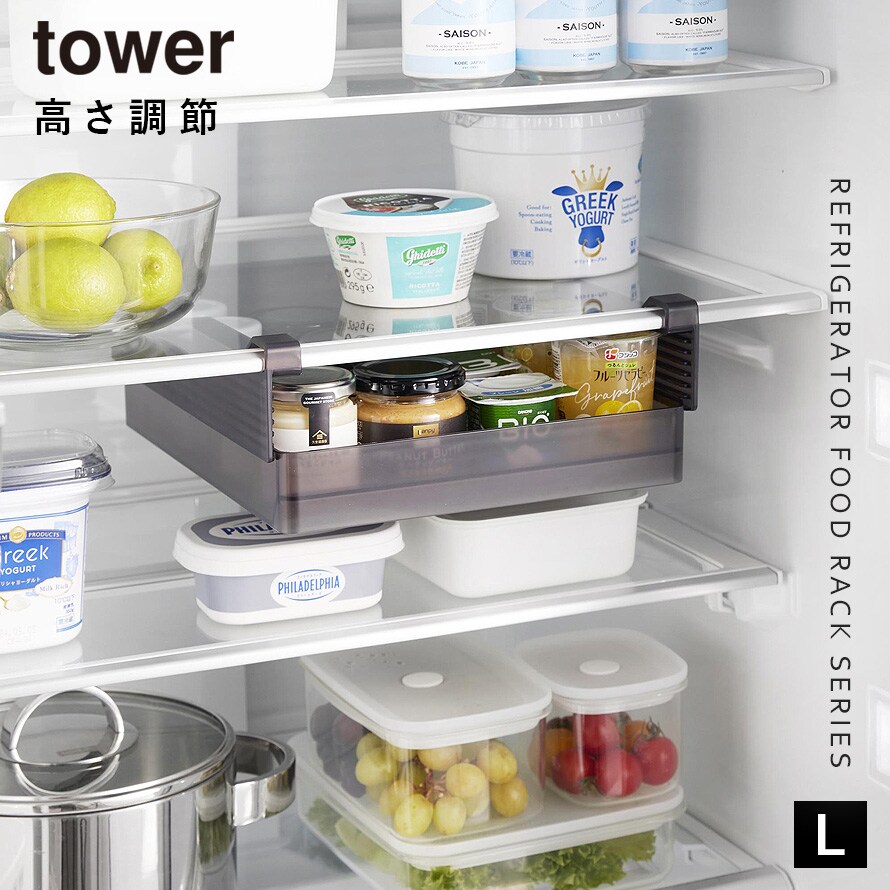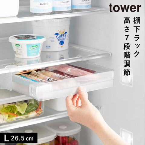 冷蔵庫中棚下高さ調節ラック タワー L 山崎実業 tower おしゃれ 冷蔵庫 収納 グッズ 引き出し モノトーン ホワイト ブラック 10110 10111