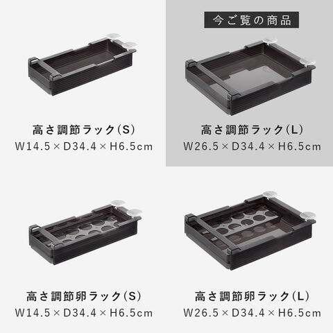 同シリーズの冷蔵庫中棚下高さ調節ラック(Sサイズ)や卵ラック(Sサイズ・Lサイズ)などもございます。