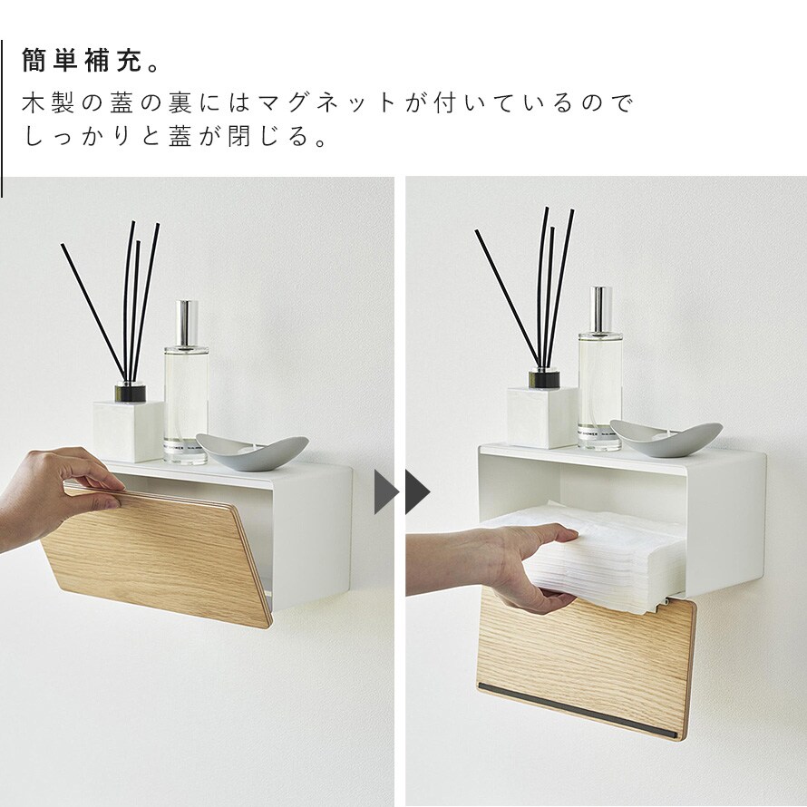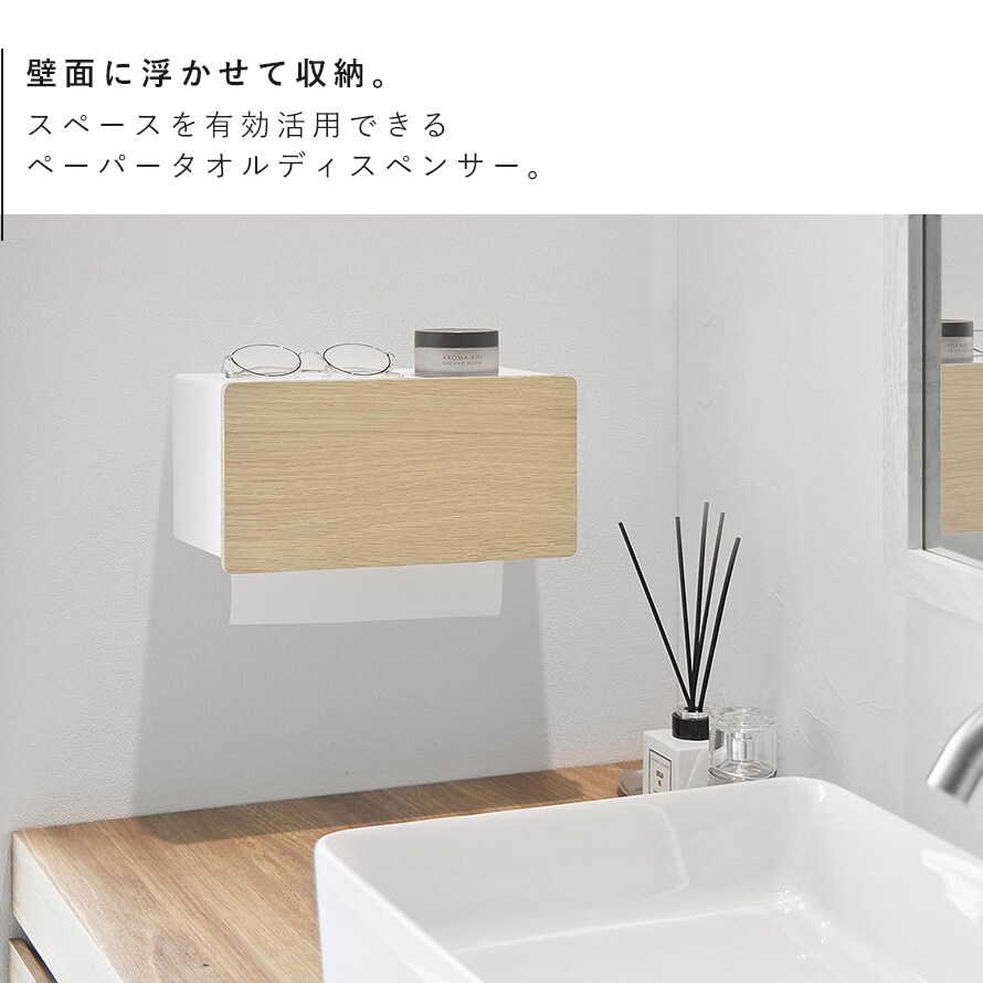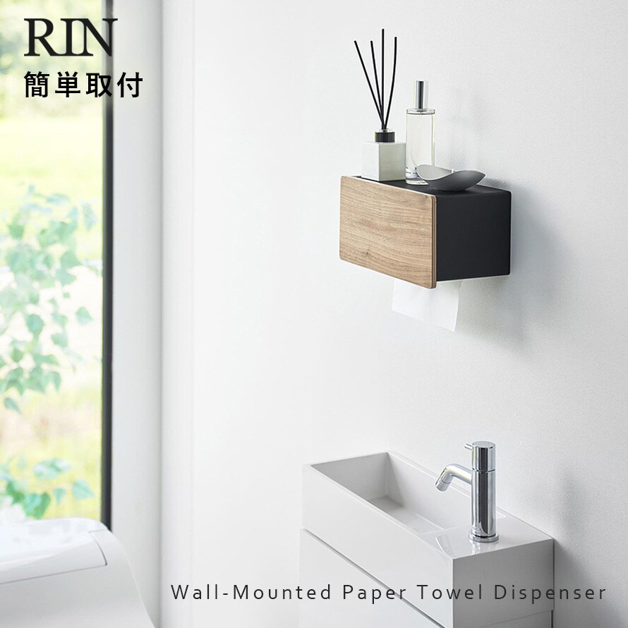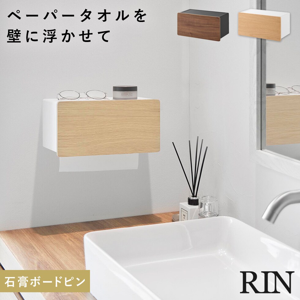 ウォールペーパータオルディスペンサー リン 石こうボード壁対応 山崎実業 RIN ペーパータオル ディスペンサー ホルダー ケース 壁掛け おしゃれ 木目 ナチュラル ホワイト ブラック 10114 10115