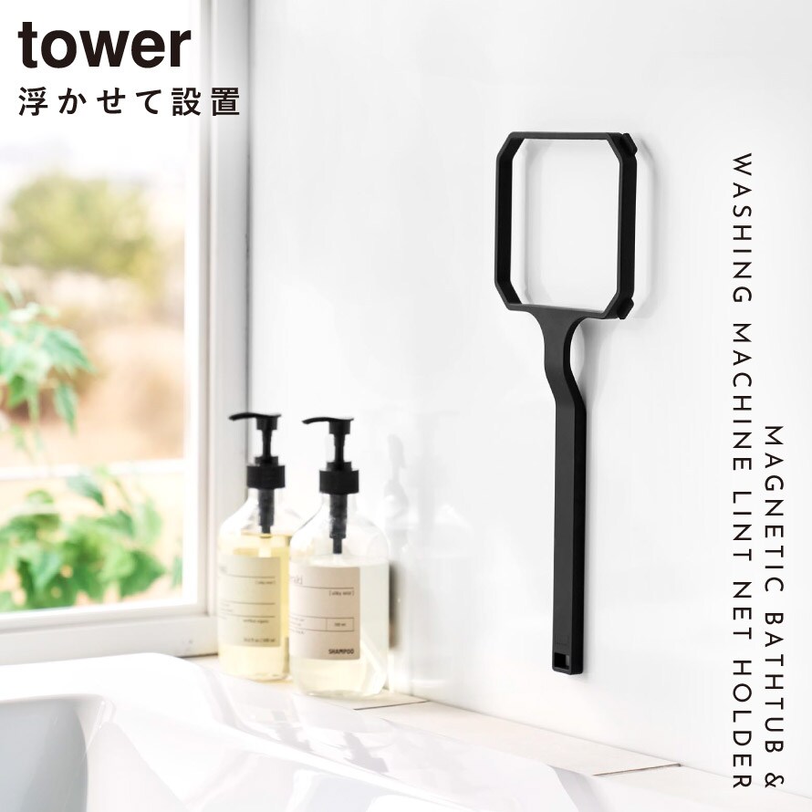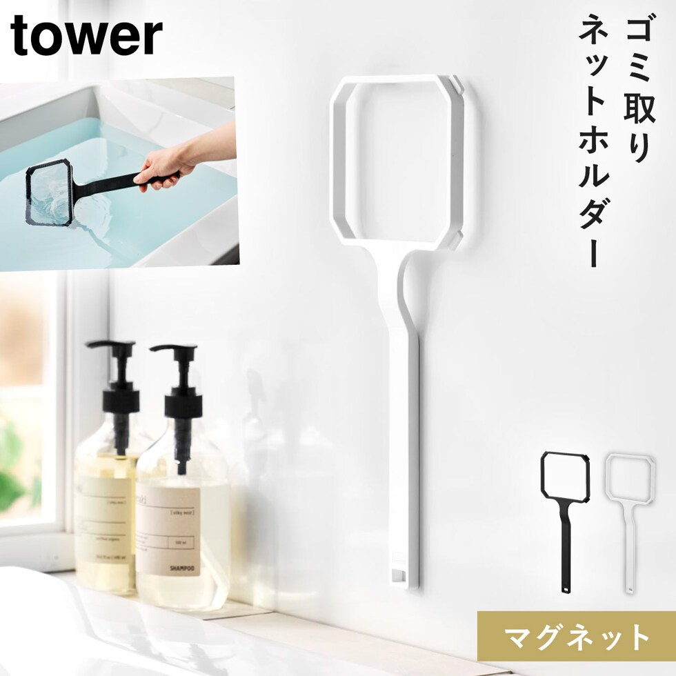 マグネット浴槽&洗濯槽ゴミ取りネットホルダー タワー 山崎実業 tower ゴミ取り ネット 風呂 洗濯機 ゴミ取りネット おしゃれ モノトーン ホワイト ブラック 10117 10118