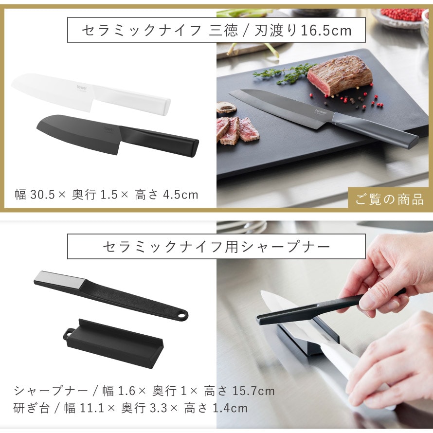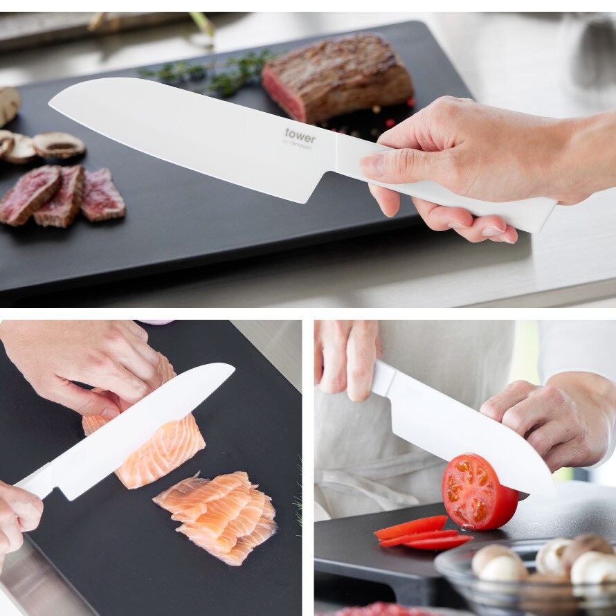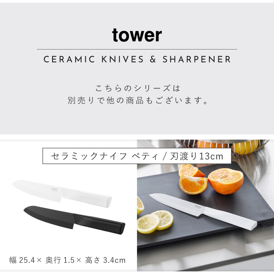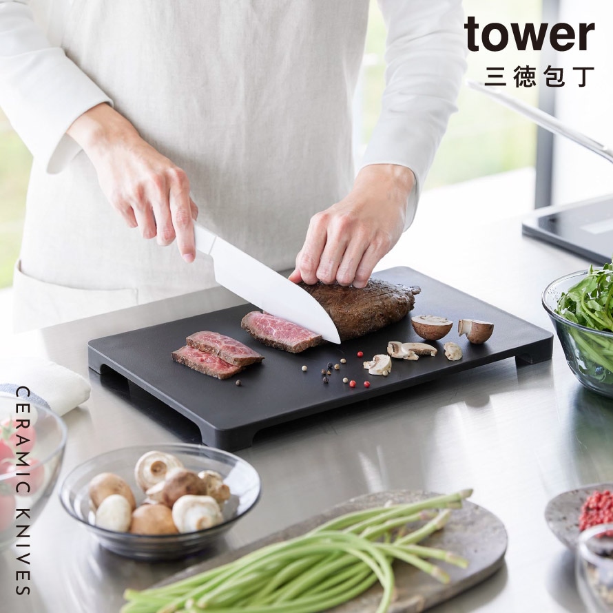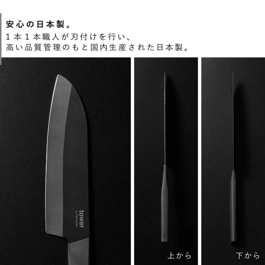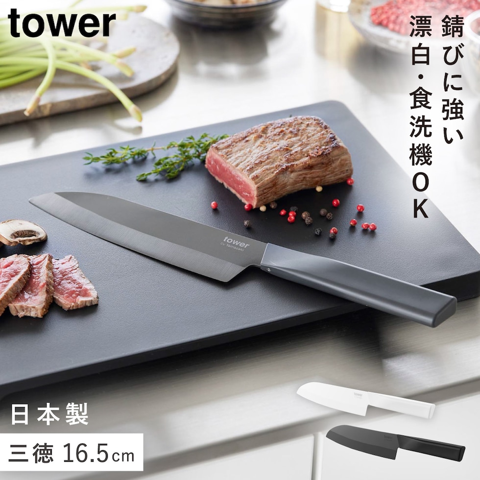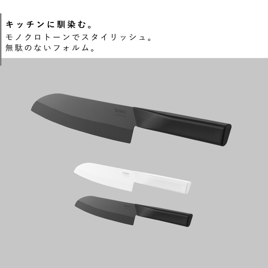 セラミックナイフ タワー 三徳 16.5cm 山崎実業 tower 三徳包丁 日本製 左利き 包丁 16.5cm おしゃれ モノトーン ホワイト ブラック 10121 10122