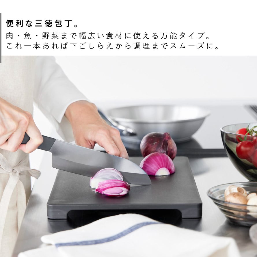 使いやすさ・軽さ・切れ味を兼ね備えた、毎日の料理に頼れる三徳包丁です。