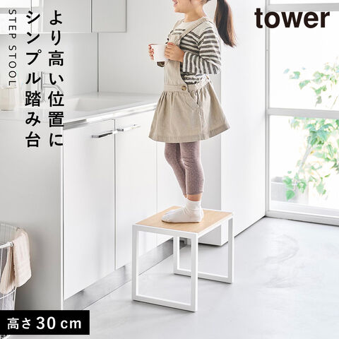 【ポイント5倍】踏み台 タワー H30 踏み台 子供 洗面 ステップ台 スツール キッチン 洗面台 玄関 おしゃれ モノトーン ホワイト ブラック 10123 10124