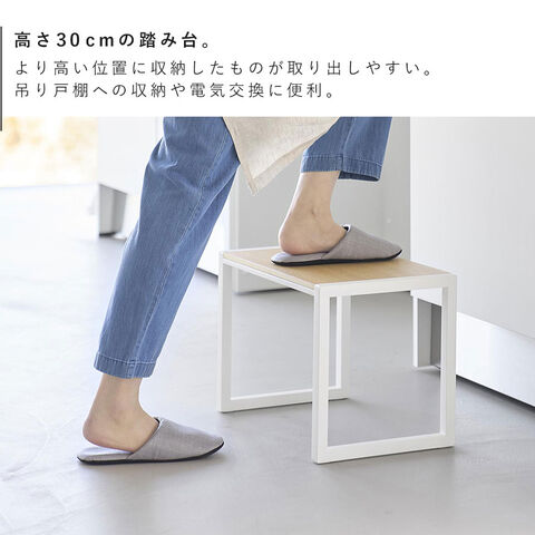 手の届きにくい吊り戸棚への収納や電球交換など高い位置での作業がしやすい高さ30cmの踏み台。