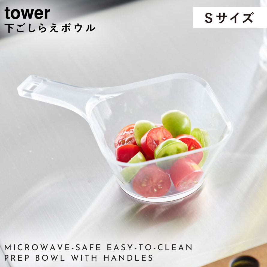 【ポイント5倍】電子レンジ対応洗いやすいハンドル付き下ごしらえボウル タワー S クリア 山崎実業 tower プラスチック 透明 ボウル レンジok 食洗機対応 食器 おしゃれ 10129