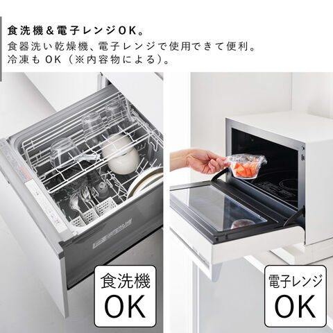 食洗機OKなのでお手入れも簡単。冷凍もOKです(※内容物による)。
