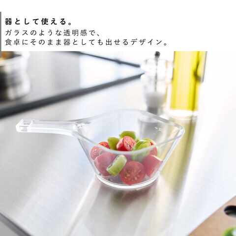 電子レンジOK。メモリ付きで計量できるハンドル付きボウル。
