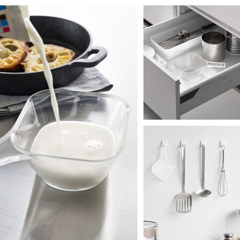50mLごとのメモリ付きで200mLまで計量ができます。