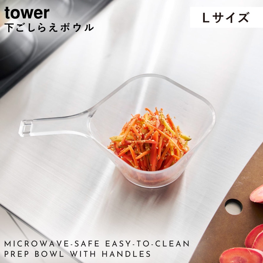【ポイント5倍】電子レンジ対応洗いやすいハンドル付き下ごしらえボウル タワー L クリア 山崎実業 tower プラスチック 透明 ボウル レンジok 食洗機対応 食器 おしゃれ 10130