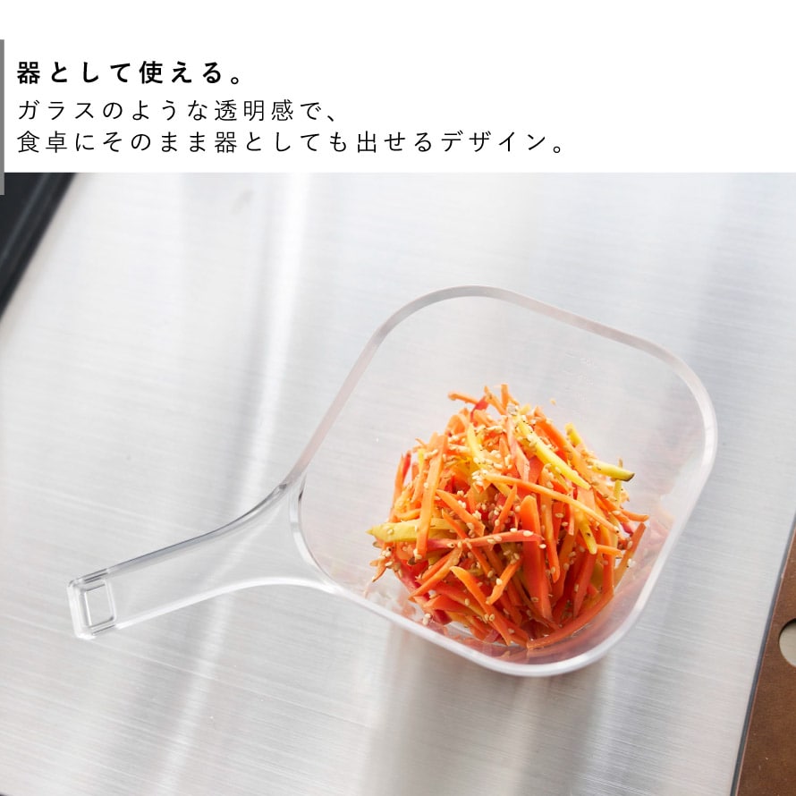 大きめで使いやすいLサイズ。メモリ付きで計量ができます。出汁作りにも最適。