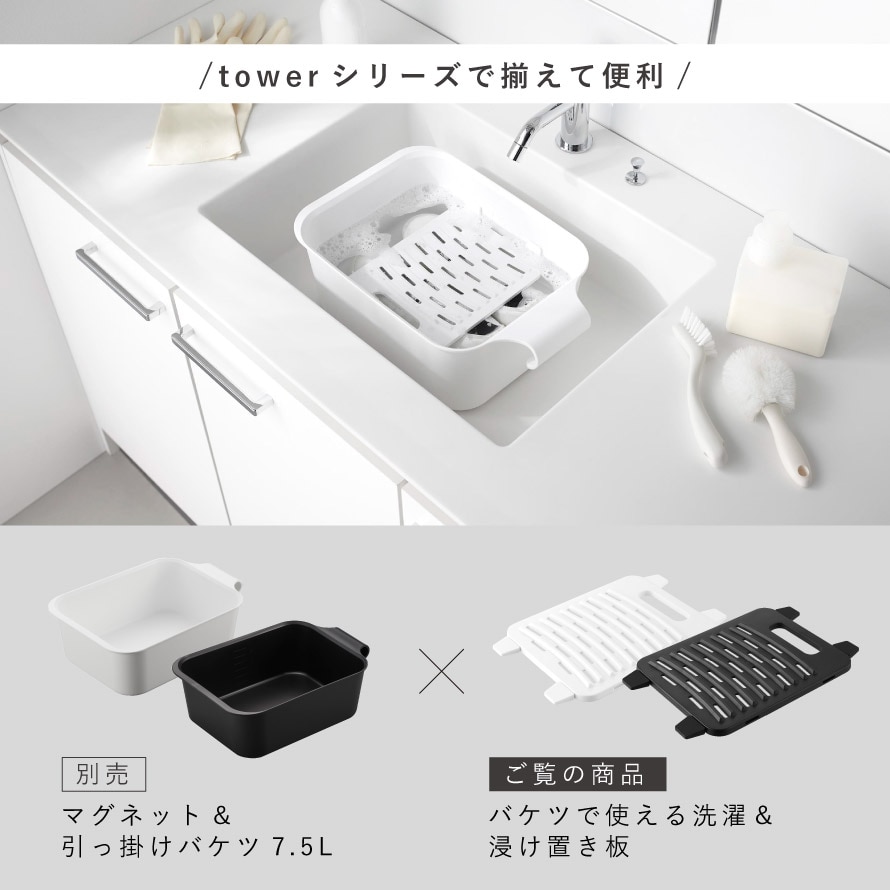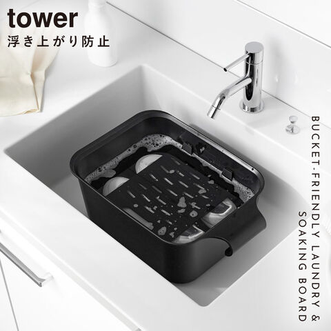 【ポイント5倍】バケツで使える洗濯&浸け置き板 タワー 山崎実業 tower 洗濯板 ミニ つけ置き洗い 上靴洗い おしゃれ モノトーン ホワイト ブラック 10133 10134
