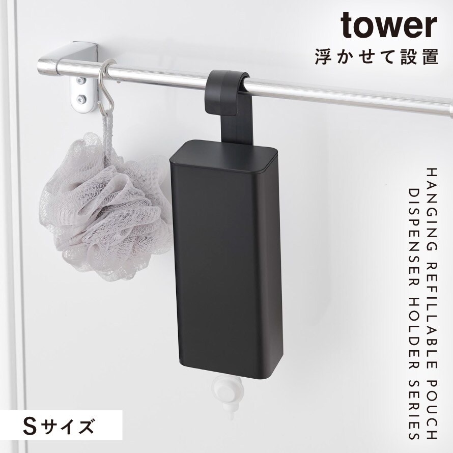 引っ掛けバスルーム詰め替えパウチディスペンサー収納ホルダー タワー S 山崎実業 tower 詰め替えない ディスペンサー シャンプー ボトル マグネット 詰め替え おしゃれ モノトーン ホワイト ブラック 10149 10150