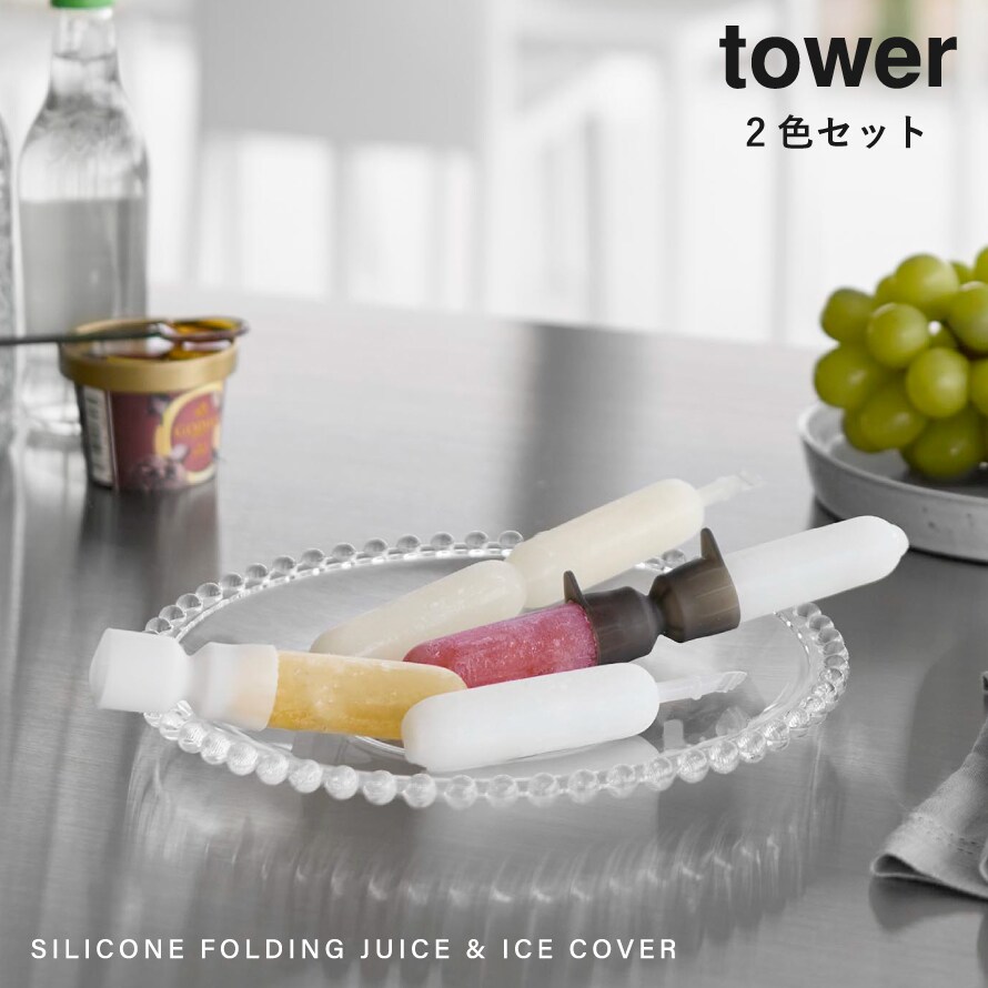 シリコーン折るポリジュースアイスカバー タワー 2色セット ホワイト&ブラック 山崎実業 tower アイス カバー チューペット シャーベット スティック おしゃれ モノトーン ホワイト ブラック 10163