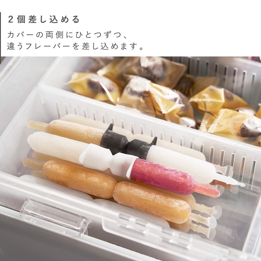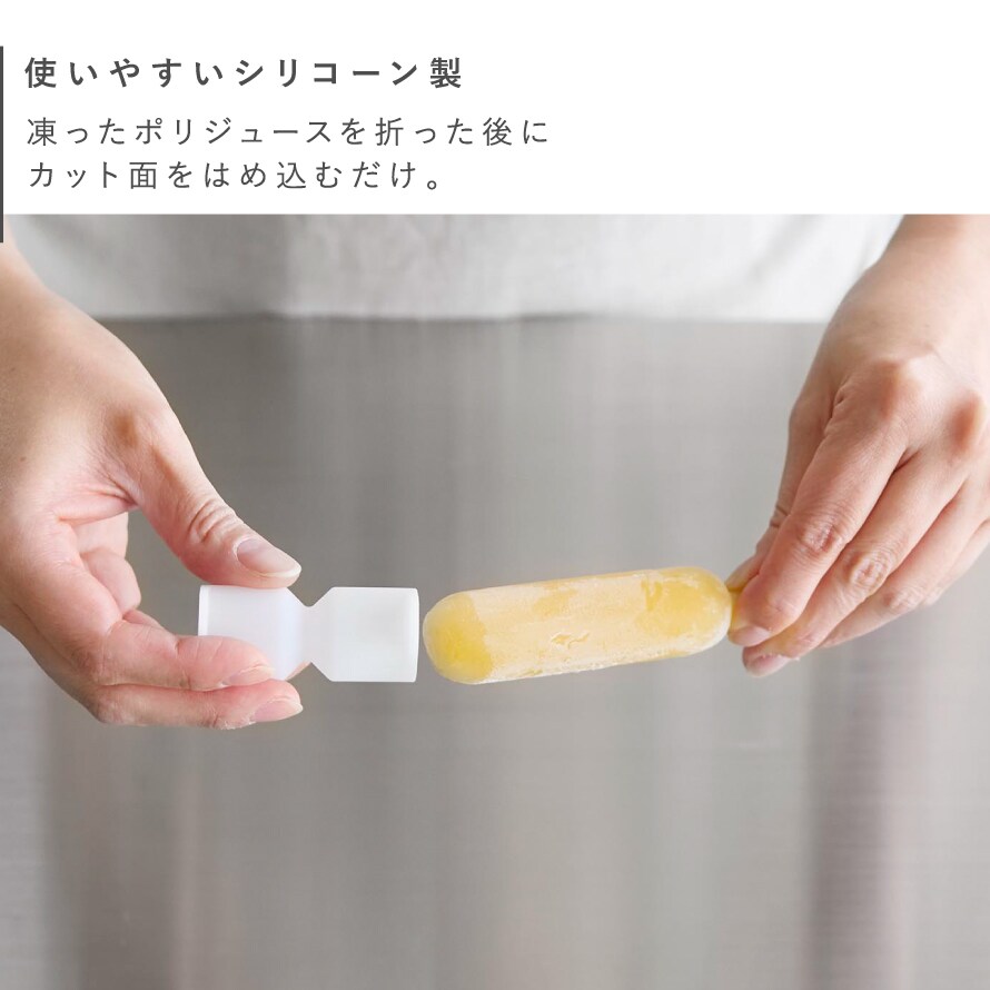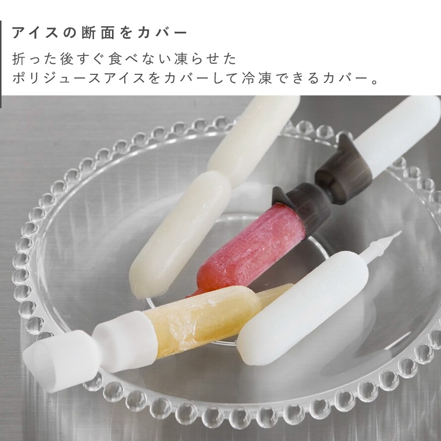 余ってしまった半分のポリジュースアイスのカット面をカバーして、再び冷凍庫に戻して保存できるアイスカバー。ホワイトとブラック、各1個ずつ入っている2色セットです。食洗機で簡単にお手入れできます。