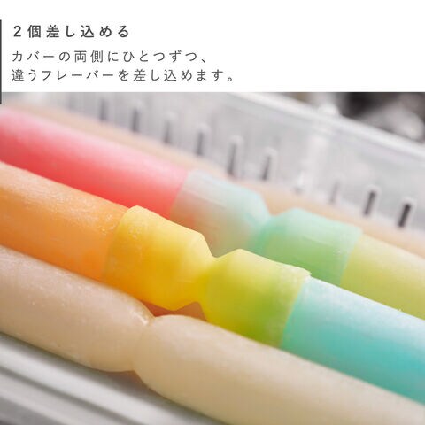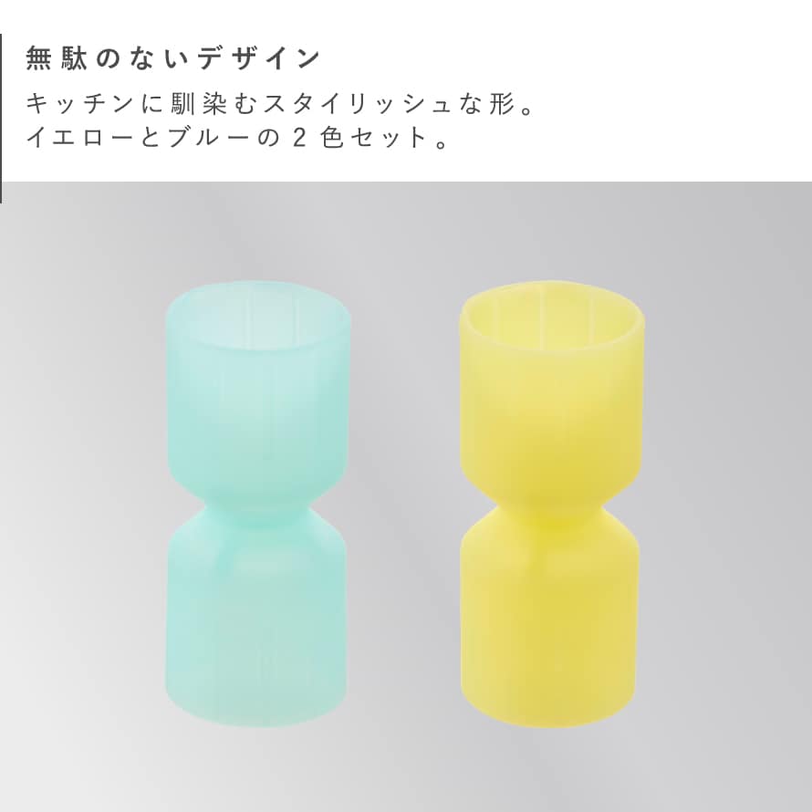 余ってしまった半分のポリジュースアイスのカット面をカバーして、再び冷凍庫に戻して保存できるアイスカバー。イエローとブルー、各1個ずつ入っている2色セットです。食洗機で簡単にお手入れできます。