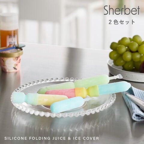 シリコーン折るポリジュースアイスカバー シャーベット 2色セット イエロー&ブルー 山崎実業 tower アイス カバー チューペット シャーベット スティック おしゃれ イエロー ブルー 10164
