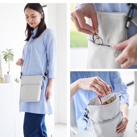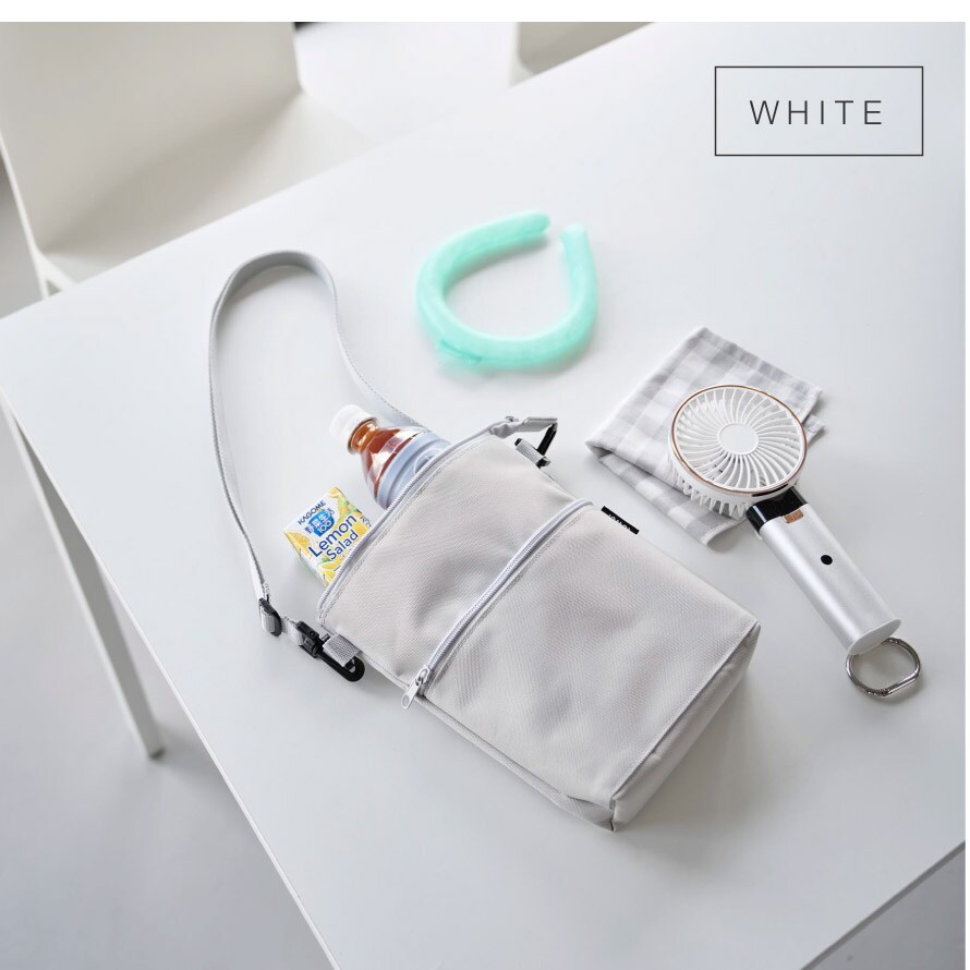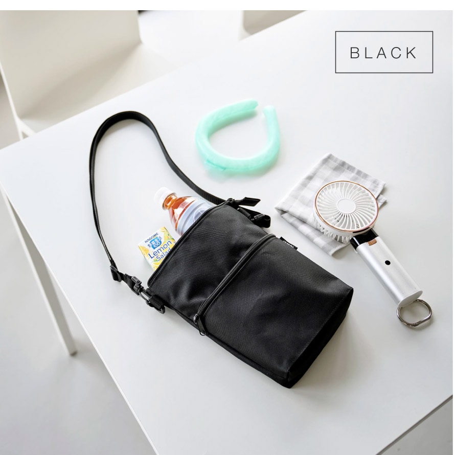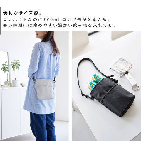 ショルダーストラップは長さが調節できて取り外しも可能。夏のちょっとしたお出掛けの際、冷たい飲み物や冷却リングなどを入れるのにピッタリのサイズです。
