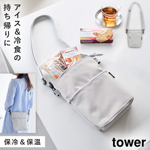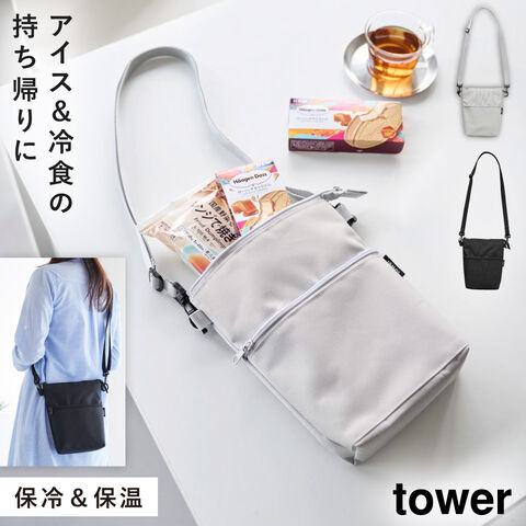 コンビニちょい買い保冷&保温バッグ タワー 山崎実業 tower 保冷バッグ 小さめ ショルダー 保冷 ミニ バッグ おしゃれ モノトーン ホワイト ブラック 10165 10166