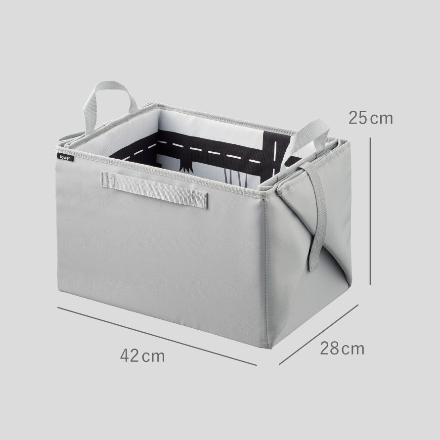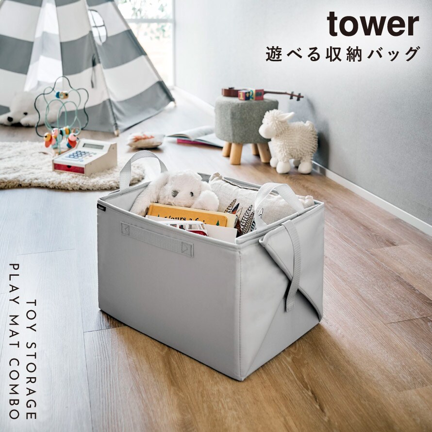 【ポイント5倍】プレイマットにもなるおもちゃ収納 タワー ライトグレー 山崎実業 tower プレイマット おもちゃ箱 折りたたみ たためる 長方形 おしゃれ モノトーン ライトグレー 10169