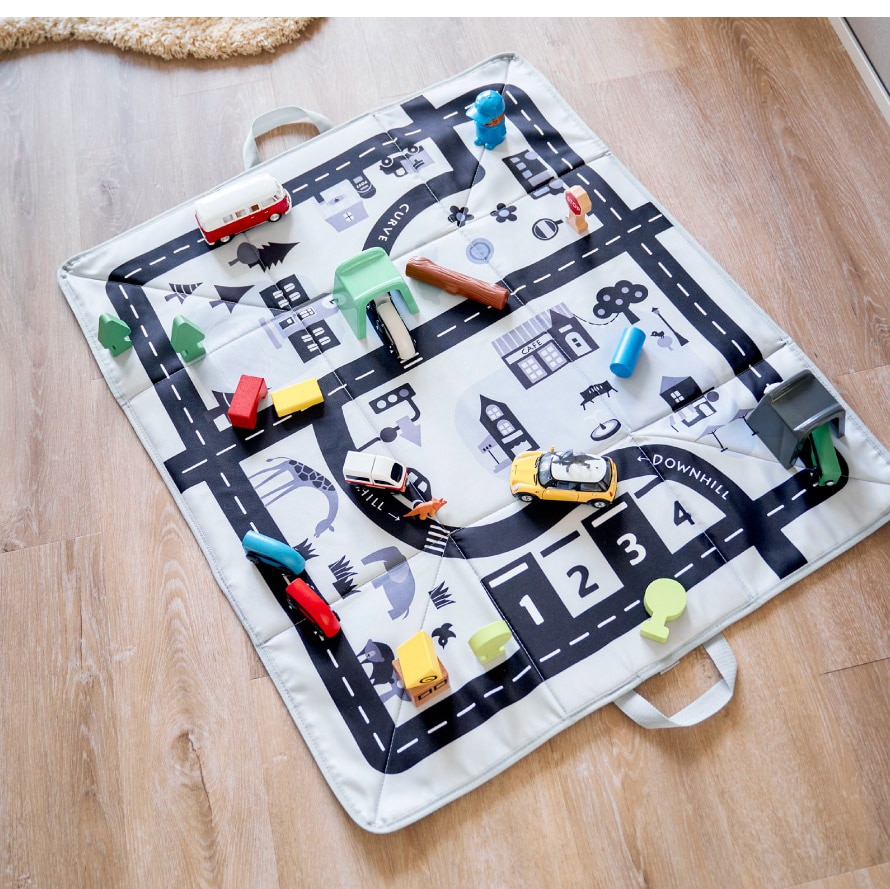 イラストがプリントされているのでごっこ遊びや車遊びが楽しめます。