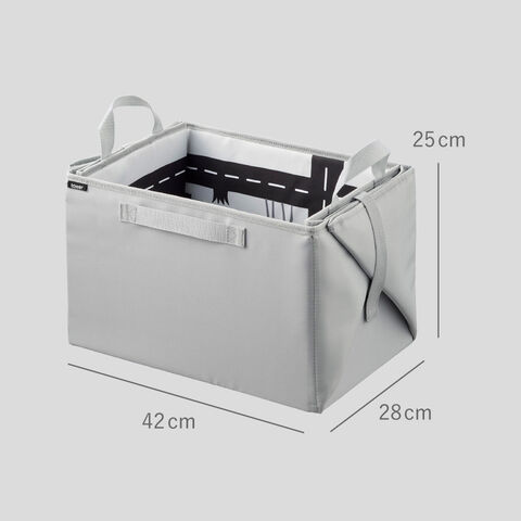 | サイズ | 組み立て時/幅42×奥行28×高さ25cm(持ち手含まず)、展開時/幅89×奥行76×高さ0.5cm(ベルト・持ち手含まず) |