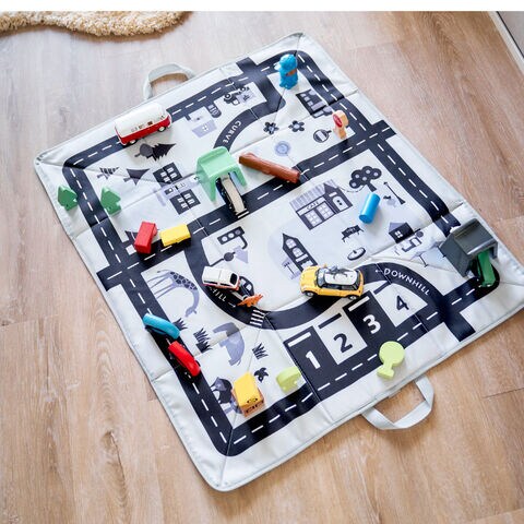 広げるとプレイマットとして遊べるおもちゃ収納ケース。