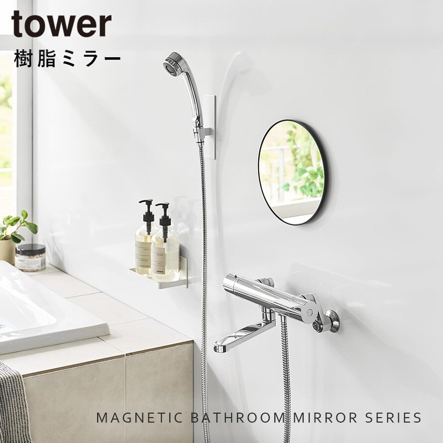 マグネットバスルーム樹脂ミラー タワー 丸型 23cm 山崎実業 tower 鏡 お風呂 ミラー 割れない マグネット 曇り止め バスルーム おしゃれ モノトーン ホワイト ブラック 10171 10172