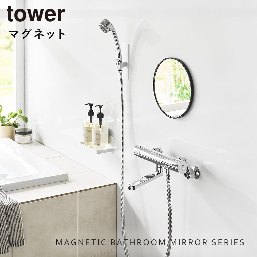 マグネットバスルームミラー タワー 丸型 23cm 山崎実業 tower マグネットミラー 鏡 お風呂 浴室鏡 曇り止め マグネット バスルーム おしゃれ モノトーン ホワイト ブラック 10175 10176