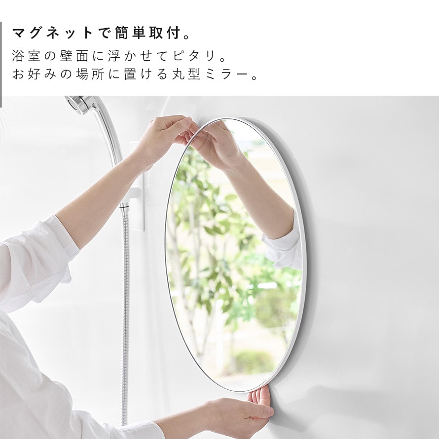 マグネットバスルームミラー タワー 丸型 42cm 山崎実業 tower マグネットミラー 鏡 お風呂 浴室鏡 曇り止め マグネット バスルーム おしゃれ モノトーン ホワイト ブラック 10177 10178