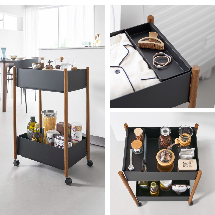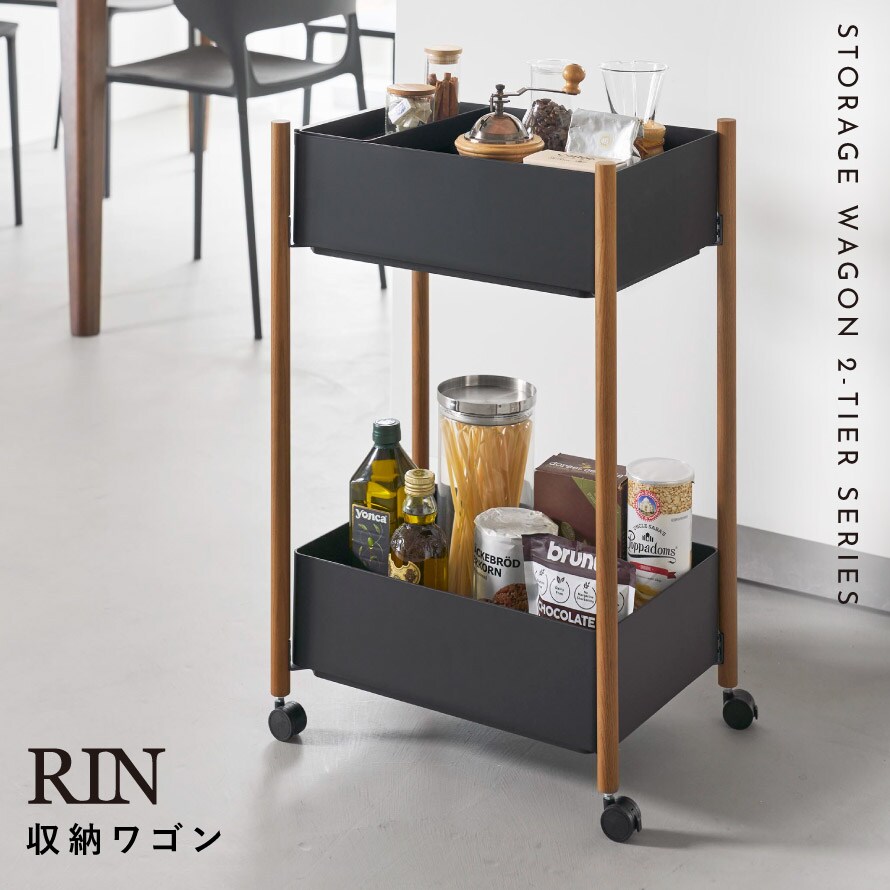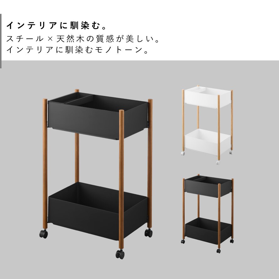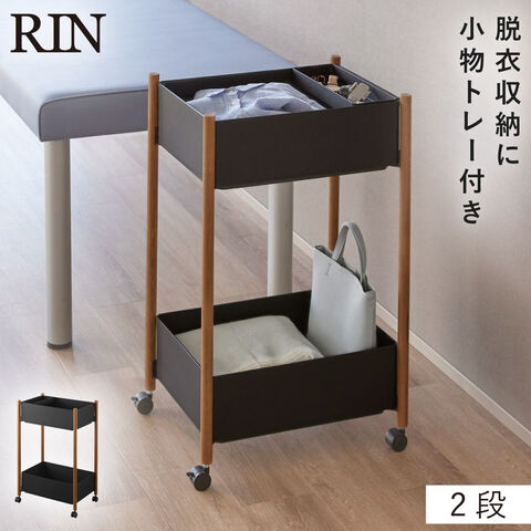 小物トレー付き収納ワゴン 2段 リン 山崎実業 RIN ワゴン キャスター付き サロン 2段 スリム おしゃれ モノトーン ホワイト ブラック 10179 10180