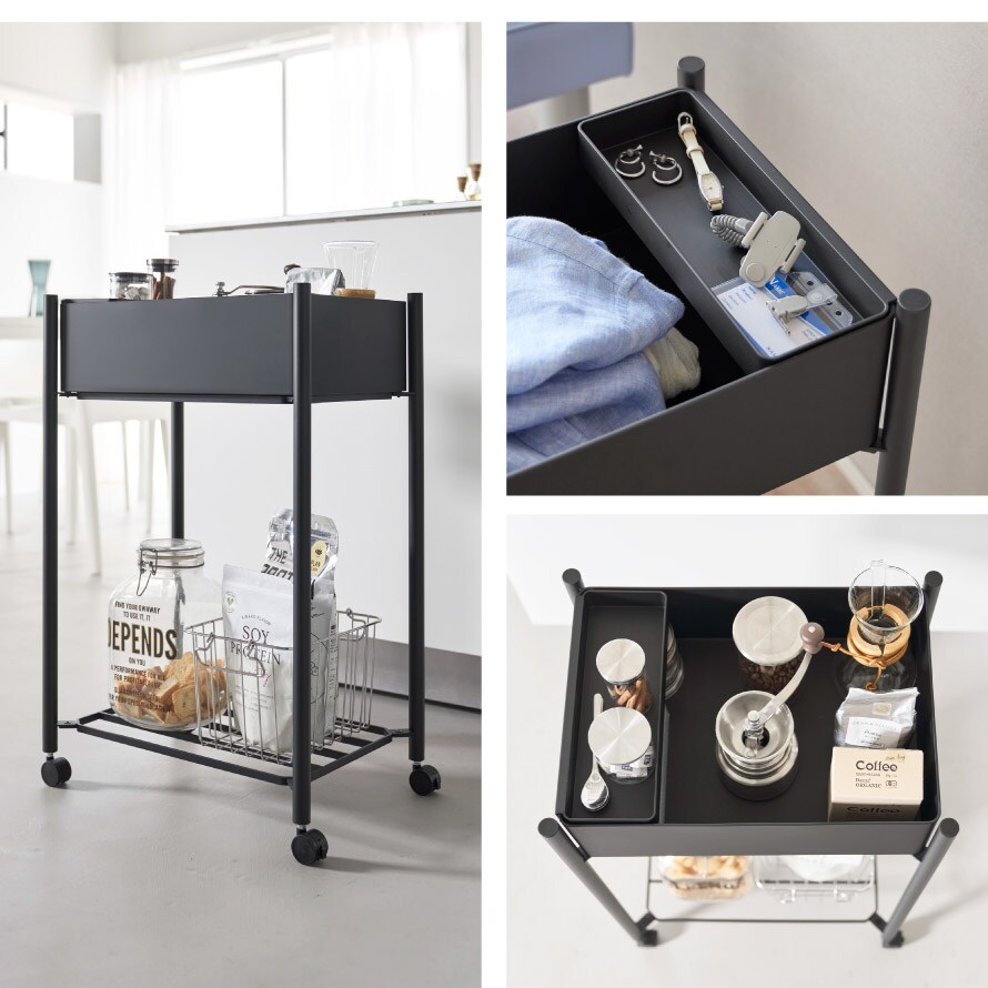 アクセサリーや財布など貴重品が埋もれないように収納できる小物トレー付き。