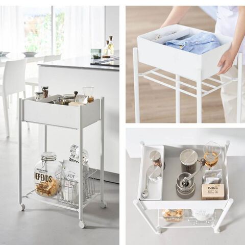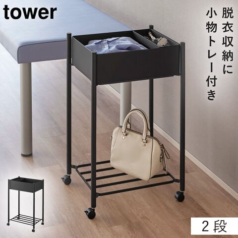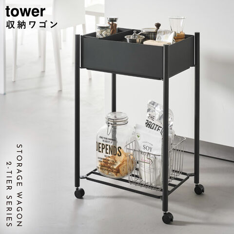 小物トレー付き下段が棚の収納ワゴン 2段 タワー山崎実業 tower ワゴン キャスター付き サロン 2段 スリム おしゃれ モノトーン ホワイト ブラック 10185 10186
