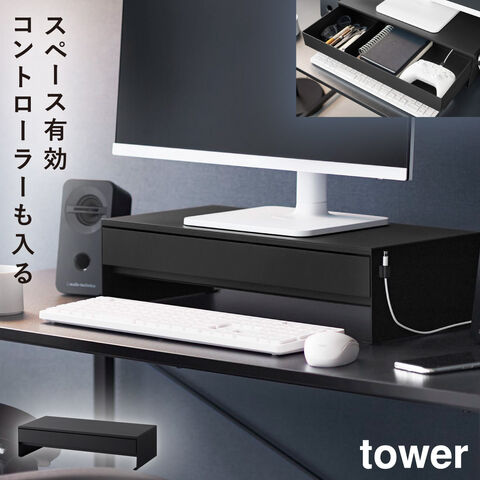 ゲームコントローラーも入る引き出し付きモニター台 タワー 山崎実業 tower モニター台 引き出し 卓上 モニター 台 机上 モニターラック おしゃれ モノトーン ホワイト ブラック 10187 10188