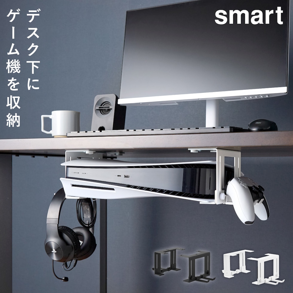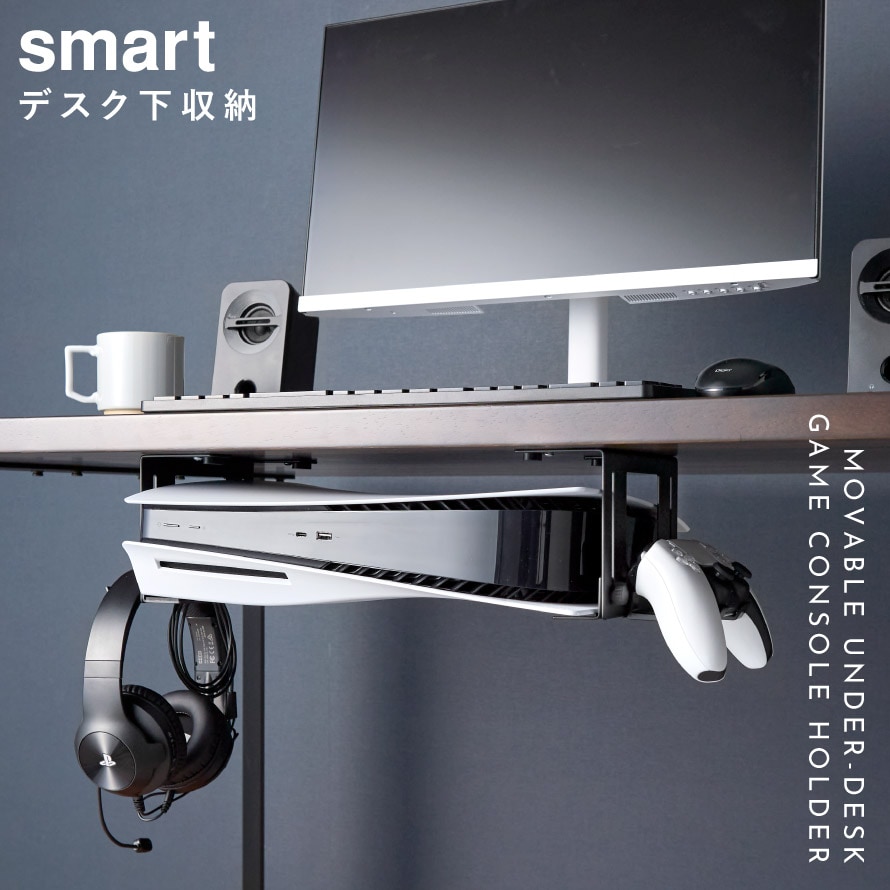 可動式デスク下ゲーム機ホルダー スマート 山崎実業 smart ゲーム機収納 ゲーム機 ps5 スイッチ 収納 ラック おしゃれ モノトーン ホワイト ブラック 10189 10190